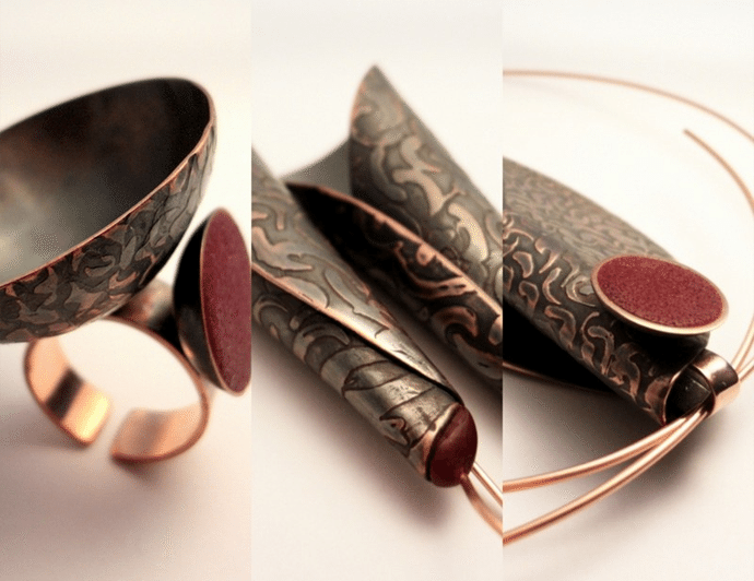 Iskreno, moje namjere su bile sasvim drugačije kada sam odlučila krenuti s metalom. Izradom nakita bavim se već nekoliko godina i, kako to obično biva, krenula s jednim medijem, pa drugim. Uglavnom, tražite se, preispitujete svoje interese i mogućnosti. Kod mene je početak bila polimerna glina a za koju su mi bile potrebne metalne osnove različitih od svih onih dostupnih na tržištu. Zato sam odlučila svoje metalne osnove proizvoditi sama. Ali upoznavši što metal jest brzo sam ga prigrlila kao moj primarni, samostalni medij. Zašto? Obožavam njegovu podatnost, bez obzira što to možda ne izgleda tako na prvu ruku. Obožavam njegovu reakciju na vatru, kiselinu, patinu. Oblikovati nešto iz tako hladnog i krutog medija, još me uvijek fascinira. I što, bez obzira na to koliko želite vladati procesom nastajanja nekog predmeta obradom metala, uvijek ostane onaj mali element iznenađenja na kraju. Osobno, jako volim snažan i robustan nakit a metal mi to omogućuje.