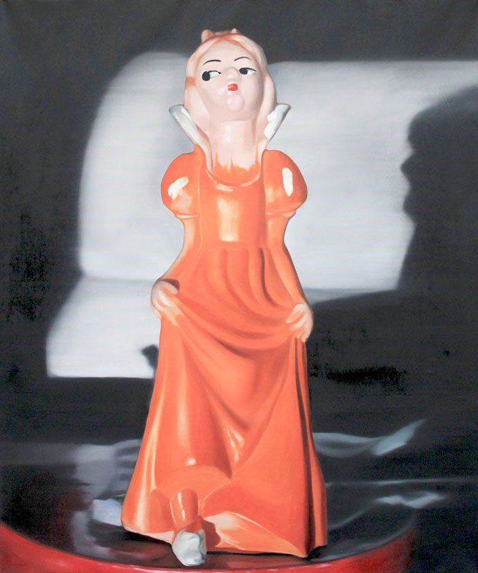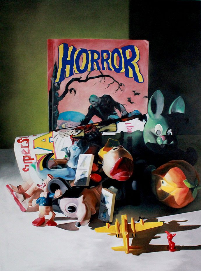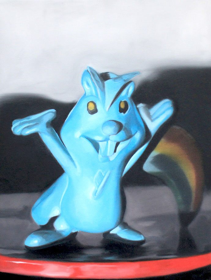 Možeš li reći nešto o posljednjoj izložbi “Proizvod” u Galeriji Josip Račić? S kojom namjerom si odabrala upravo motive uglavnom plastičnih igračaka? Je li to na neki način pokušaj da igračku-proizvod i njezinu vrijednost (koja za pojedinca hlapi i s vremenom pada u zaborav kroz proces odrastanja), učiniš besmrtnima, smještanjem na “relevantnije” i trajnije mjesto u vremenu i prostoru-na slikarsko platno?
