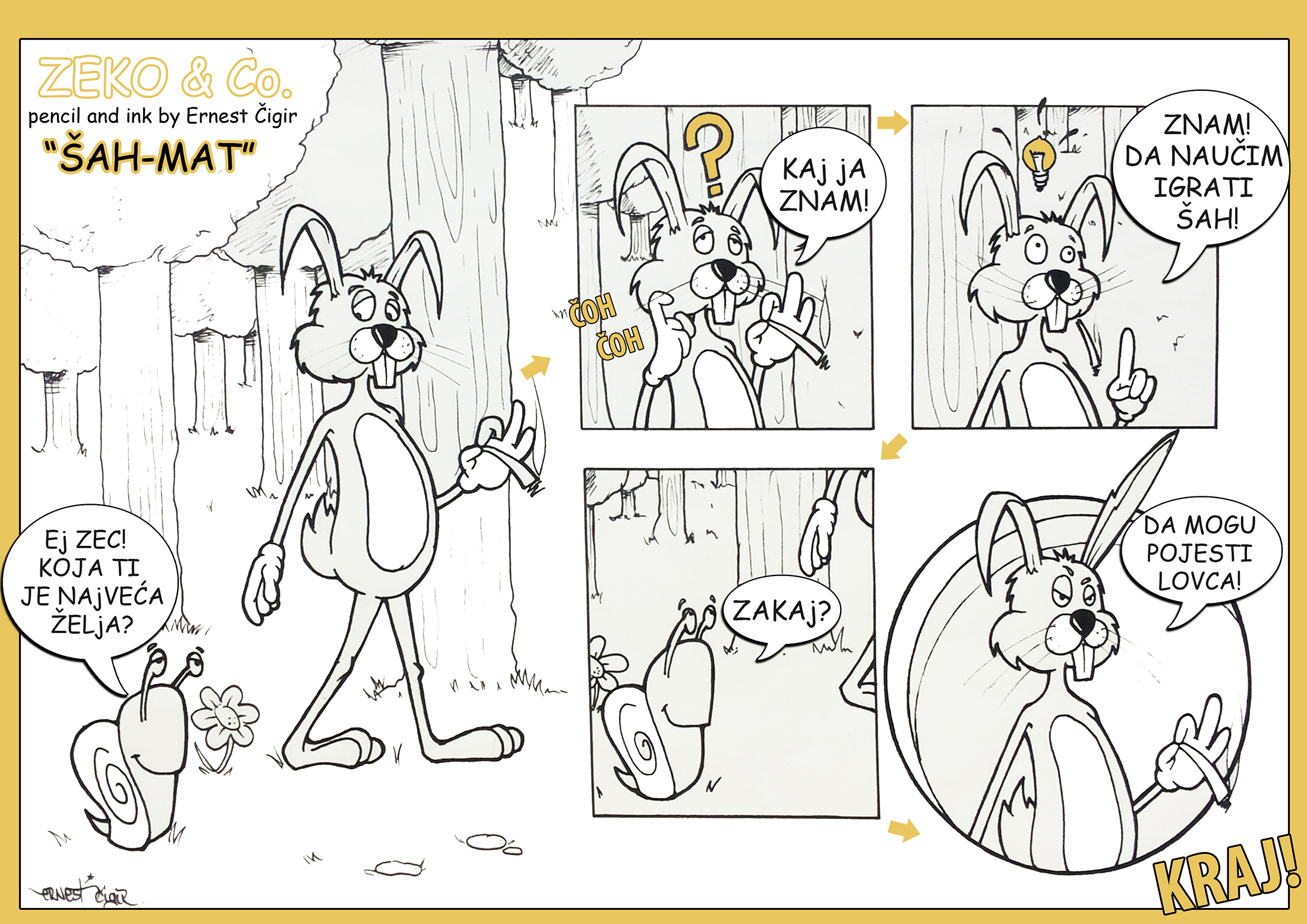 Što se dogodi kada čovjeku koji zna relativno dobro crtati, koji voli viceve o zecu i ekipi iz šume, date olovku i papir? Strip „Zeko i šumadinci“. Eto što.