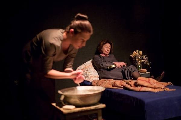 Mračna je atmosfera u koju svoju publiku dovode autori ove predstave. Minimalističko osvjetljenje isprepleteno s bezizražajnom sivom odjećom protagonistica. Na jednome kraju peć – stara, koja se loži na drva, na drugome tek jedan krevet u kojima (majka i kćer) zajedno preživljavaju teške i hladne noći, a u sredini stol na kojem se pažljivo valja tijesto za štrudlu. Publika tik do junakinja ove drame. Iskren i jednostavan prostor koji otvara mogućnosti ovim likovima da progovore iz sebe (i predaju se svojoj publici). Njihove svađe i međusobna spočitavanja, zajedničke igre i neporeciva ljubav svevremenske su. Njihova je situacija teška, mnoge su se stvari dogodile u njihovim životima, koliko se vole one si i međusobno zamjeraju, napetost je opipljiva u zraku kao i miris štrudle s jabukama što se peče. Ipak, kako će njih dvije drugačije nego zajedno?