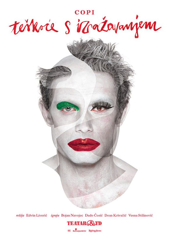 L’homosexuelou la difficulté de s’exprimer ili u prijevodu Teškoće s izražavanjem dramski je tekst argentinskog pisca i karikaturista Raula Damontea Botanea, poznatijeg pod pseudonimom Copi koji je tijekom 60ih godina pa sve do svoje smrti u 80ima djelovao na području Pariza. Autora, zasada većinom nepoznatog hrvatskoj sceni i publici, na daske je odlučio podići Edvin Liverić u suradnji s glumcima Bojanom Navojcem, Deanom Krivačićem i Dadom Ćosićem te Vesnom Stilinović (koja se unutar predstave pojavljuje u manjoj ulozi), čineći to na pozornici Teatra&TD, neupitno najpodatnijeg za djelo tog pomalo kontroverznog, latinoameričkog stvaraoca.