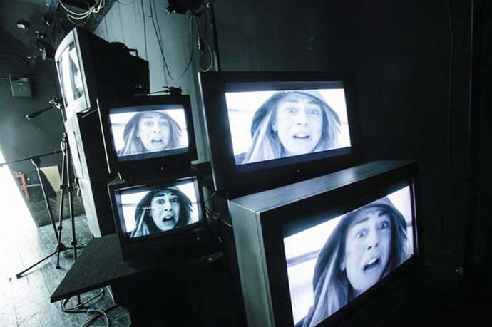 Postavljajući cijelu tragediju u prostor reality televizije (TebaTV), Gatica s jedne strane funkcionalno opravdava jezik likova, a s druge strane (i nepobitno važnije) otvara pitanja (sa)znanja javnosti – kako su upravo mediji postali sredstvo današnjih Kreonta za kontroliranje masa, koju se u vremenu sve veće moguće tranzicije među ljudima i informacijama, pokušava pretvoriti u bezličnu nakupinu mrava, pripadnika globalnog mravinjaka. Pri tome se te iste probrane informacije pažljivo kadriraju i montiraju, ne bi li se izabrala najpovoljnija perspektiva, ona koja će otkrivati u onolikoj dozi koliko je to nužno da bi kolektiv ostao zadovoljen, da ne bi postavljao (previše) pitanja. Postavljajući televizijske ekrane na scenu, Gatica, osim uspostavljanja ambijentalnog ugođaja (koji, doduše, nije ugodan) postiže tu mnoštvost perspektiva, gdje se postavlja pitanje – koja je ona prava? Pogibelj za idealne i nasilno narušavanje sistema, je li to rješenje? Je li to nešto što će uistinu protresti sustav kao takav i omogućiti njegovo ponovno etabliranje u korist općeg i individualnog dobra? Jesu li smrti Antigona samo nešto što će puniti naslovnice, tih istih pomno satkanih novina i časopisa ili su prvi pomaci k oslobađanju medijske programatičnosti i čovječanstava kao takvog?[/vc_column_text][/vc_column][/vc_row][vc_row][vc_column width=”1/1″][vc_single_image image=”7524″ border_color=”grey” img_link_target=”_self” img_size=”full”][/vc_column][/vc_row][vc_row][vc_column width=”1/1″][vc_column_text]#radninaslovantigona, neće možda ponuditi rješenje, ali uputit će na nužnost osvještavanja tog nesrazmjera između mase i pojedinca gdje se pojedinca pokušava uporno izbrisati.