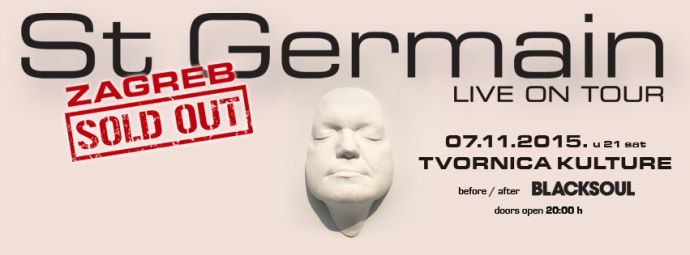 Rasprodane su ulaznice za koncert St Germaina koji će se održati ovu subotu 7. studenog u Tvornici kulture. Svi oni koji su svoje ulaznice kupili na vrijeme, u Tvornicu kulture moći će ući od 19:45h kada počinje i Blacksoulov set. St Germain na pozornicu izlazi u 21h te organizatori savjetuju da dođete ranije kako bi izbjegli gužvu na ulazu. Prema uputama managementa, na koncertu nije dozvoljeno koristiti fotoaparate i kamere.