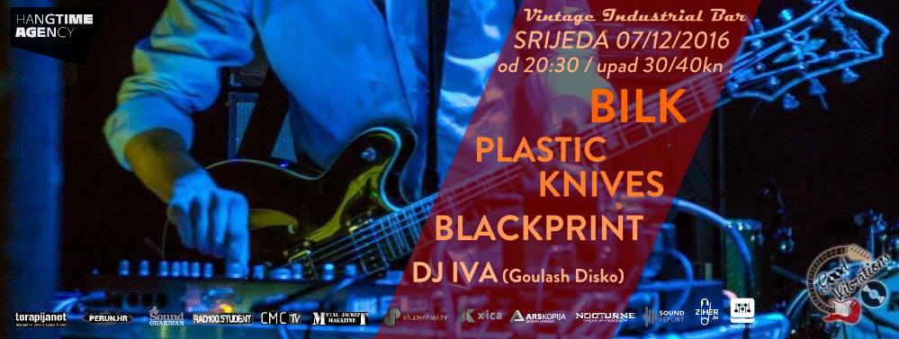 U srijedu, 7. prosinca, u Vintage Industrial Baru na novom izdanju Good Vibrationsa nastupit će BILK i Plastic Knives, a prvi nastup od osnivanja zabilježit će multimedijalni projekt Blackprint. Plesnu atmosferu začinit će DJ Iva s Goulash Disko Festivala koja sprema veoma nezgodan set za mrdanje zadnjica (op.a. na njenu se jednako nezgodnu Titraciju podsjetite ovdje).
