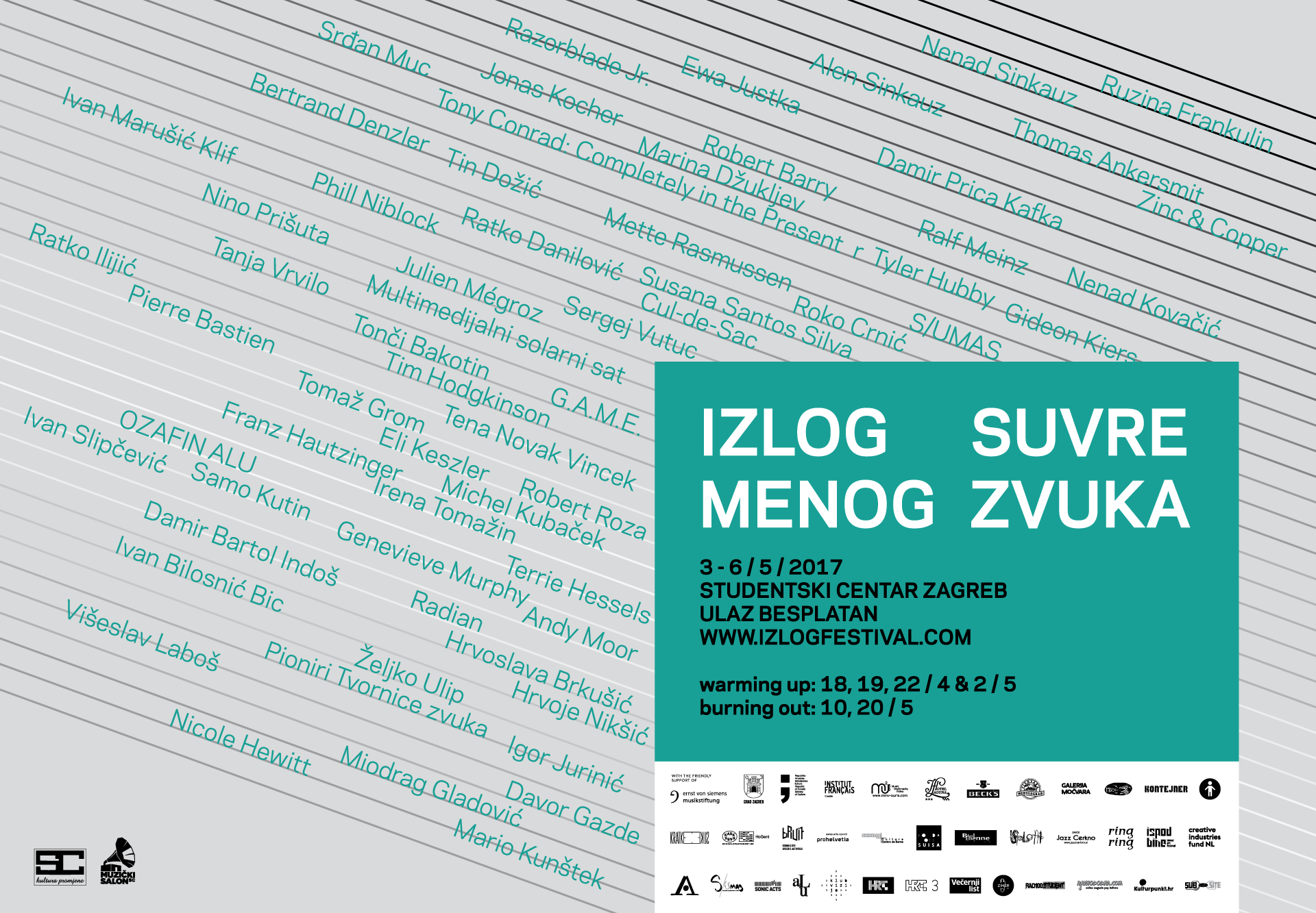 Peti međunarodni festival suvremene glazbe Izlog suvremenog zvuka održat će se od 3. do 6. svibnja 2017. u prostorima Studentskoga centra u Zagrebu (Teatar &TD, Galerija SC, MM centar, Francuski paviljon). Ulaz na sve programe festivala je besplatan.