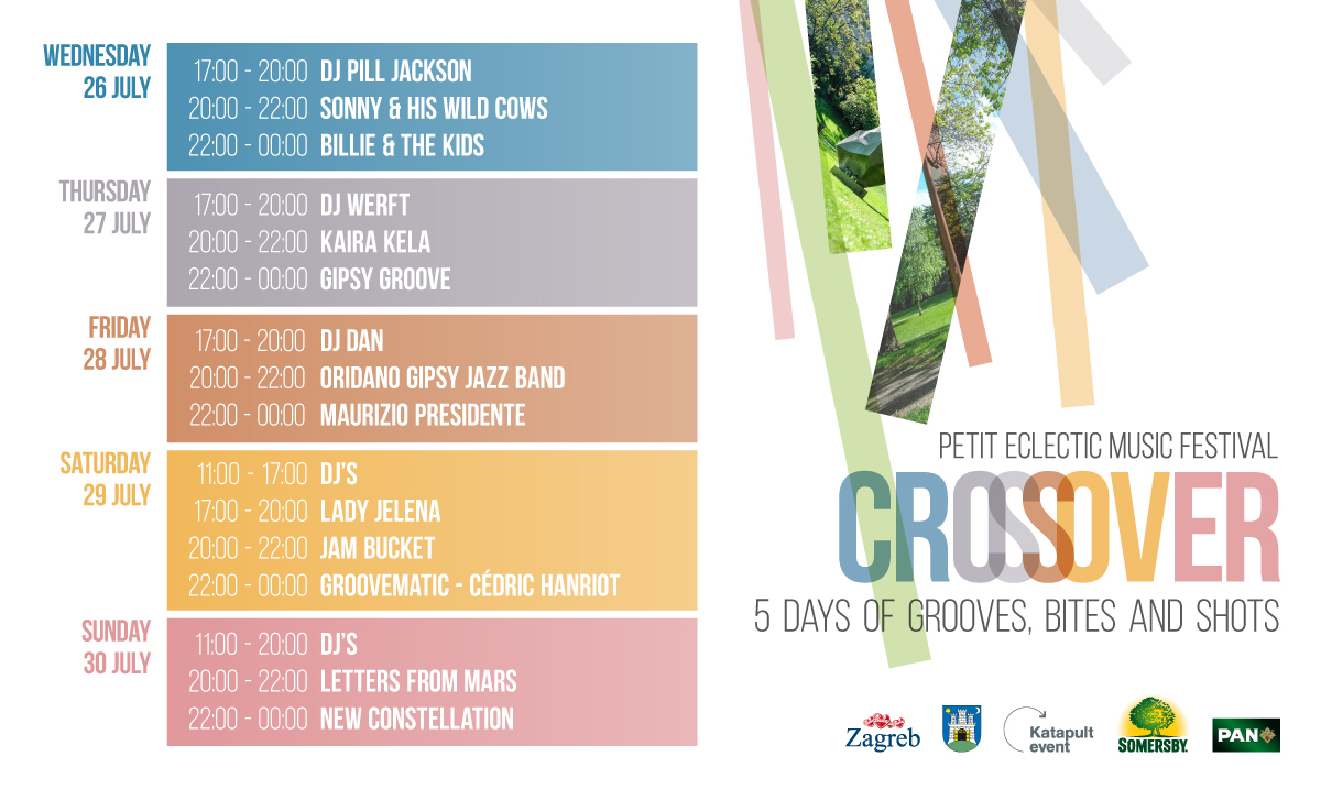 Zagreb dobiva novi međunarodni glazbeni festival – Crossover Festival Zagreb – jedinstveni petodnevni događaj u samom središtu grada, parku Ribnjak. Crossover Festival Zagreb dovodi niz zanimljivih glazbenika iz cijeloga svijeta. Nove kulture, novi glazbeni stilovi i potpuno drukčiji program čeka posjetitelje od 26. do 30. srpnja!