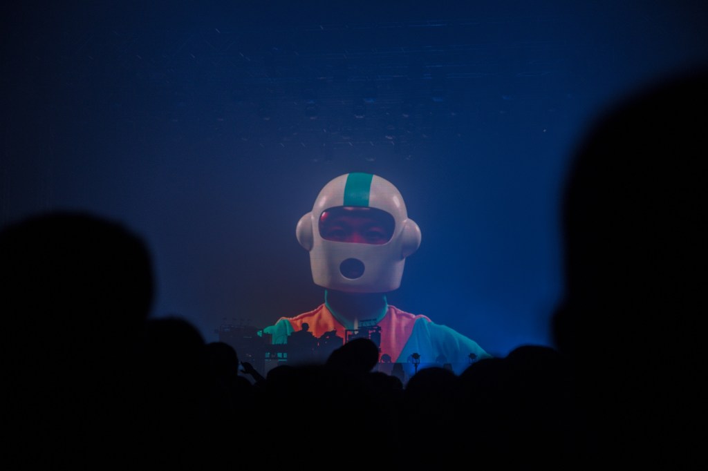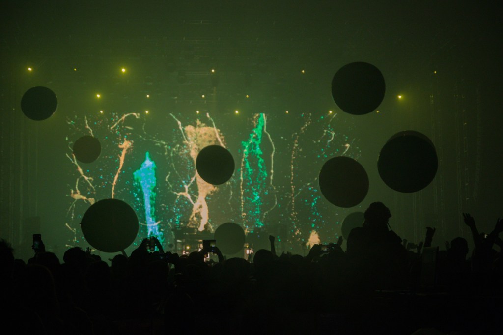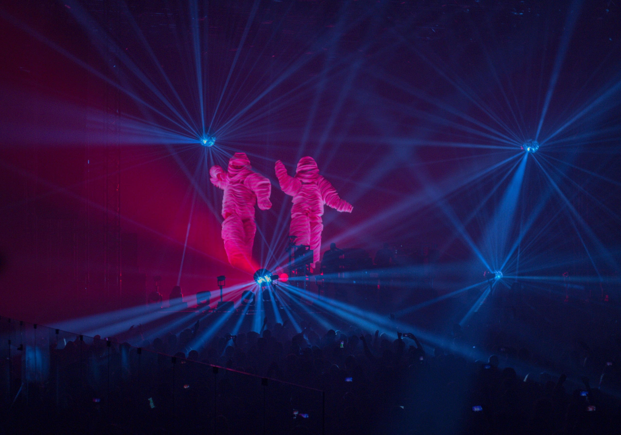 Ovakav pristup zaista je jedinstven jer prenosi široku paletu emocija – od intenzivnog apela za oslobođenje u „Free Yourself“, jezivih izraza straha i panike u „EML Ritual“, preko ljutnje u „MAH“, smiješne, bizarne i prkosne modne revije u „Gotta Keep on“, do konačnog oslobođenja i katarze u „Wide Open“. Uz to, vizuali su prebačeni u treću dimenziju korištenjem lasera i svjetala koji izviru iz samog video zida i upotpunjeni su fizičkim efektima, poput milijuna konfeta koji padaju na publiku i golemih balona kojima je publika doslovno pozvana da se priključi igri. Za vrijeme „Under the Influence“, nad pozornicu su se spustila dva golema robota nalik na igračke koji su pucali lasere iz očiju. Ako „želimo goleme robote koji pucaju lasere iz očiju“ nije ideja dvojice zaigranih dječaka, ne znam što jest.
