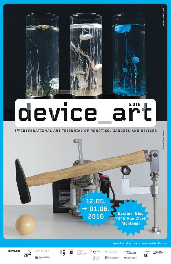 U četvrtak, 24.09.2015. u 20:00 sati u Galeriji Klovićevi dvori i na Platou Gradec otvara se peti Device_art, projekt koji se od 2004. bavi umjetnošću naprava i robotikom. Inspiriran kanadskom novomedijskom scenom, ovogodišnji Device_art 5.015 otkriva nove dimenzije zvuka i naprava te pokreta i prostora kroz međunarodnu izložbu, predavanja, radionice i performanse.