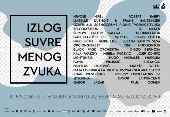 Izlog suvremenog zvuka, međunarodni festival suvremene glazbe, na svom će četvrtom izdanju okupiti gotovo 100 umjetnika iz 12 zemalja: Francuske, Nizozemske, Švedske, Poljske, Velike Britanije, Hrvatske, Austrije, Meksika, Norveške, SAD-a, Portugala i Mađarske. Od 4. do 7. svibnja, glazbenici, glazbeni istraživači, umjetnici zvuka, skladatelji i performeri u četiri će se dana publici Izloga predstaviti kroz 30 programa. Proljetno glazbeno druženje u Studentskom centru okuplja vodeća imena suvremene glazbene scene kao i ona koja tek dolaze. Izlog je istraživanje, proces i razvoj, daje prednost glazbenoj zajednici odnosno sceni radije nego zakonitostima i pravilima glazbene industrije.