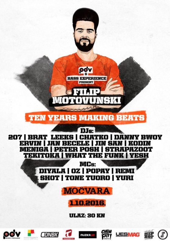 PDV Records i Bass Experience 1. listopada u zagrebačkoj Močvari predstavljaju veliku promociju duplog CD-a ‘Ten Years Making Beats’ koji je Filip Motovunski izbacio na PDV etiketi kao osvrt na svojih deset godina produkcije i DJ-inga.